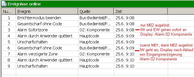 vielen Dank für Deine superschnelle Antwort! Zitat:Wenn ein verzögerter Alarm gemeldet wird, dann steht der Melder auch auf verzögert (natürlich) und nicht auf sofort.Das habe ich bis jetzt auch geglaubt. ![]() Zitat:Evtl ist die Anlage nicht ONLINE gewesen, als du die Daten gespeichert hast.Habe ich mehrfach geprüft. Im Olink neue Installation angelegt und Einstellungen verglichen. Auch mal nach Werksreset "OldScool" nur über das Bedienteil mit den Codes programmiert; zur Sicherheit danach im Olink kontrolliert, alles OK. Habe jetzt nochmal die Tests gemacht und die Einstellungen von Komponenten und Zentrale angefügt. Bei den Ereignissen sieht man folgendes: 9:08: Scharfschalten und dann Melder 02 ausgelöst --> Sofortalarm ok: 9:09: Scharfschalten zuerst M01 -- Eingangsverzögerung läuft 5s und dann M02: IW geht an, aber erst NACH Ablauf der Eingangsverzögerung kommt die Alarmmeldung als "verzögerte Zone" ![]() 9:19: Scharfschalten zuerst M01 -- Eingangsverzögerung läuft 5s und dann M02: IW geht an; dann Eingabe Hauptcode --> IW wird beendet, aber KEIN Eintrag über Alarm von M02! Ich kann mir das Verhalten nicht erklären! Falls hier jemand "zufällig" eine "Spielanlage" stehen hat; das Szenario lässt sich ja relativ leicht nachstellen. Wichtig wäre halt zu wissen, ob das so sein muss und so gewollt ist, oder ob das ein Fehler in der Anlage ist. Zur Info: Ich hatte an der Anlage am Anfang auch mal ein Funkbedienteil angemeldet; für diese Tests habe ich aber auf die Funkkomponenten verzichtet. Habe das Funkteil aus den Komponenten gelöscht und Werksreset gemacht. Gruß Tiloo |