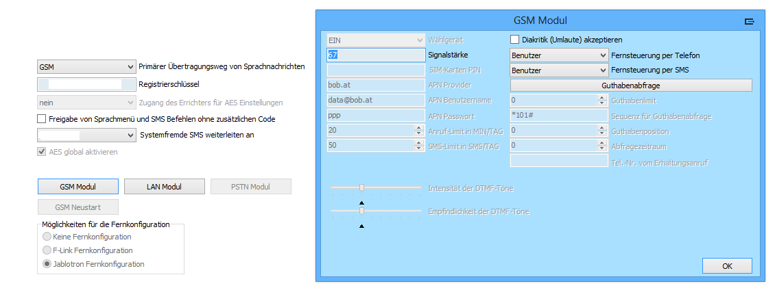 Unter Einstellungen: Übertragungsgeräte sind die meisten Optionen grau hinterlegt. Vor allem beim GSM Modul kann man keine Option mehr verändern. Woran liegts? |