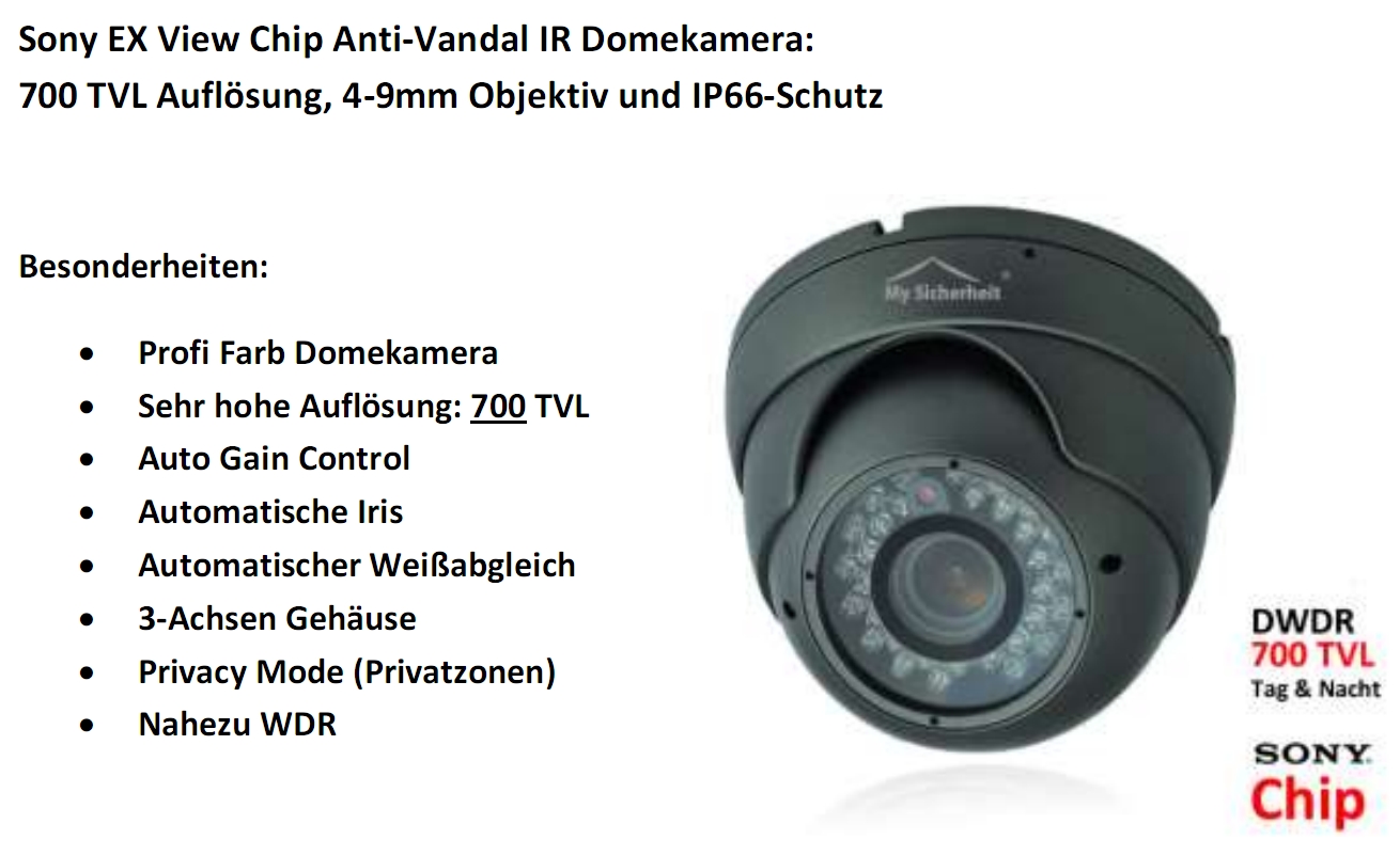 Zitat:Daraus folgt, das du Gesichter und Nummerschilder nur dort erkennen kannst wo die max. Bildbreite 2 - 4 m beträgt. Erstmal DANKE für die Antwort ![]() An der Kamera kann man den Focus und den Zoom einstellen. hab den auf das schärfste eingestellt, aber nicht wirklich mit Erfolg. bin auch in das Menü in der Kamera, finde dort aber nichts mit Weitwinkel? wo könnte man das umstellen? bzw nach welche Bezeichnung muss ich suchen? --------------------- meinst du diese Kamera wäre besser? >> Klick mich für details << Vielen dank LG Peter |