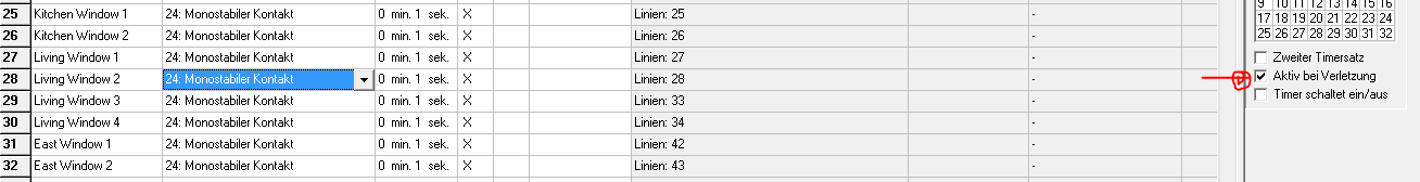 1) An den Fenstern habe ich den AVD-100 (Funk-Magnetkontakt). Der hat ja zwei Linien. Stelle ich diesen bei dem Reaktionstyp beide male auf "Sofortlinie"? 2) Ich habe bereits konfiguriert, dass beim Öffnen des Fensters übers das KNX-Modul eine "1" auf den KNX-Bus gesendet wird. Dummerweise sendet das Modul sofort eine "0" hinterher, obwohl das Fenster noch geöffnet wird. Gibt es hier eine Einstellung, welche ich übersehen habe? |