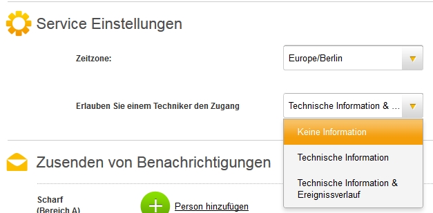 du musst erst einmal die Frage beantworten: Was möchte ich? Das einfachste ist den Dienst zu beenden. Dann gibt es keine Meldungen an den Server mehr und du hast eben auch keine Steuerung und Kontrolle per Smartphone. Oder du kannst in den Einstellungen des Dienstes bei Service die Abfragemöglichkeit von Informationen durch den Errichter abschalten. Ich spreche mit meinen Kunden immer drüber. Ich schaue ersten regelmäßig in die Informationen um zu sehen, ob es Unregelmäßigkeiten gibt. Als Errichter bekomme ich eine Meldung, wenn z.B. eine Batterie schwach wird. So ist eine schnelle Reaktion möglich. Ich kann mir Log Files ansehen und so z.B sehen wie sich der GSM Empfäng verändert. Ich kann NICHT die Anlage scharf und unscharf stellen. Du bestimmst halt was geht. Gruß Tim Ich habe nicht auf jede Frage die passende Antwort, aber zu jeder Antwort die passende Frage. Auch wenn es Wenige ärgert, im Zweifelsfall geht mir Information vor Rechtschreibung. |