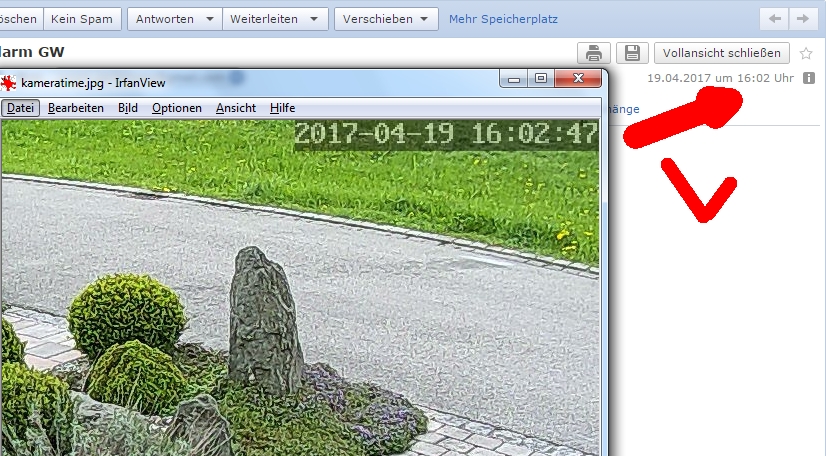 GMT + 1h und die Sommerzeit (automatically adjust) sind eingestellt. Wie gesagt im Kamerabild wird die Zeit auch korrekt angezeigt, nur die EMails haben eine Empfangszeit von 1 Stunde später.