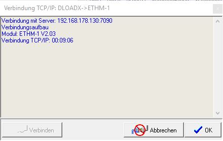 1. Nach dem Start von DLOADX lade ich die Konfiguration von der Festplatte 2. Dann gehe ich auf Verbinden -> TCP/IP - ETHM1.... 3. Dann geht ein kleines Fenster auf in dem ich nochmals auf den dort erscheinenden Button "Verbinden" klicke 4. Dann sollte die erfolgreiche Verbindung gemeldet werden Gruß Hogend Satel Integra 64 Plus, alles diskret verdrahtet, kein Funk, 2xINT-TSI, 2xSatel Grey Dual, 6xVD-1, 8xS1, 1xB-3A, INT-VG, ETHM1-Plus, INT-GSM LTE, 2xSPW100, SP-4003. In Betrieb seit 02.01.2016.