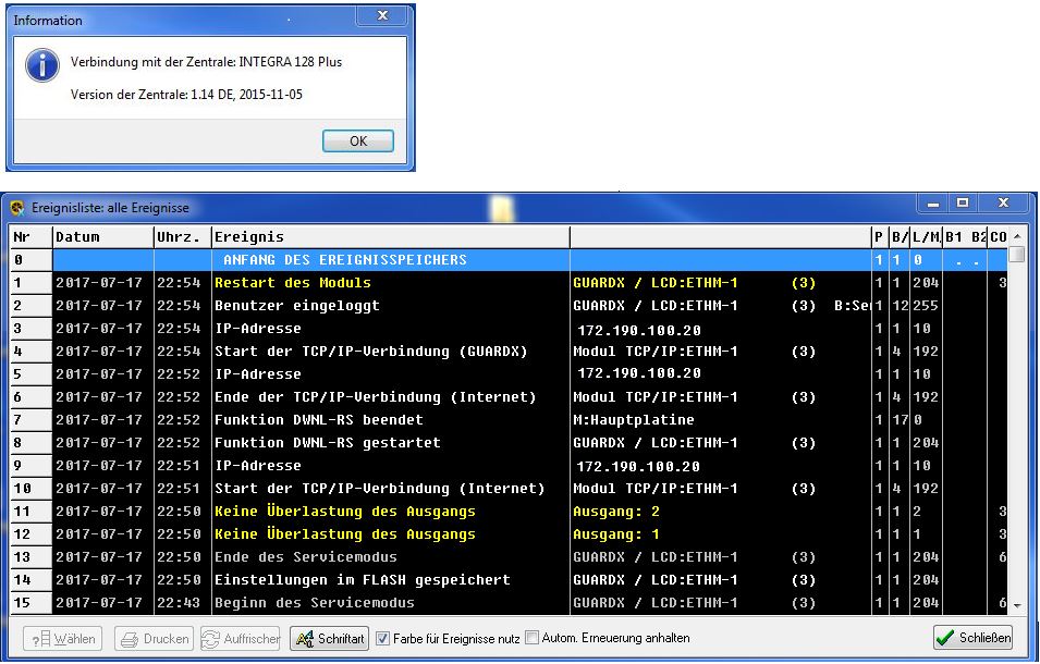 Integra 128 plus / DLOADX-->ETHM-1 Plus Verbindungs Problem