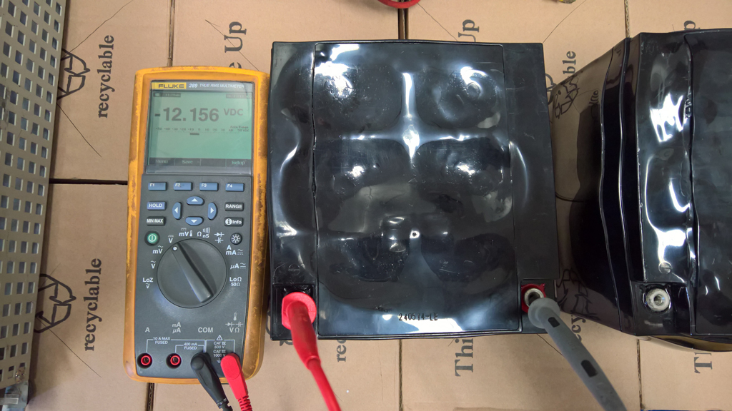 So hier einmal zwei Blöcke aus zwei Sätzen die ich ausgetauscht habe und die gerade einmal 1,5 Jahre im Einsatz waren und schon vor einem Jahr von uns aus Sicherheitsgründen außer Betrieb gesetzt wurden. Ich habe jeweils die Blöcke mit einem Multimeter und einmal mit Multimeter und parallel geschaltetem Lastwiderstand gemessen, damit erkennt man schön wie unterschiedlich die Messungen sind.