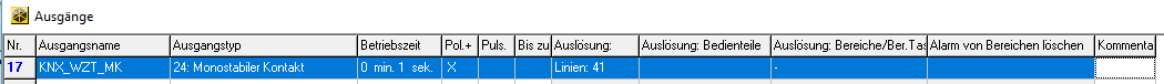 Für Ausgänge seitens der Satel Anlage die an den KNX gesendet werden sollen, wird im KNX Modul nur der Ausgang mit der jeweiligen KNX GA definiert. Physische Ausgänge bei der Satel Anlage sind keine notwendig.