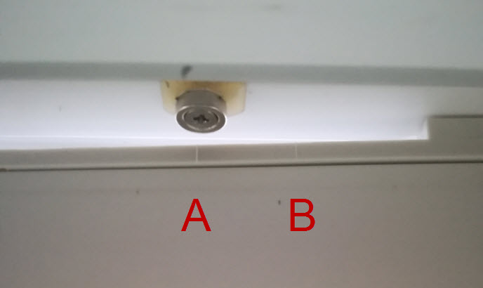 ich nutze die Funk-Kontaktsender JA-82M auf der unteren Seite der Fenster, um diese trotz Scharfstellung der Alarmanlage auch auf Kipp stellen zu können. Der Abstand zum Magneten ist bei Kipp scheinbar im Grenzbereich, denn ich hatte schon zweimal einen Fehlalarm. Jetzt wurde mir der Einsatz von zwei Magneten empfohlen. Frage: wo sollte man den zweiten Magneten genau befestigen? Über dem ersten könnte evtl. zu eng werden. Bliebe nur noch daneben. Der erste Magnet sitzt genau über "A". Kann man den zweiten auch daneben setzen, also Richtung "B"? Oder müssen die genau über "A" sein? |