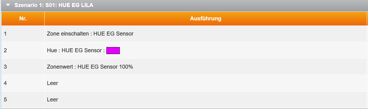 Hab's mit 3 Kontakte und 8 Regeln getestet ---> funktioniert. (Anhang) Was ich gelernt habe: Die HUE-Lampen übernehmen die Farbwerte und Intensitätswerte nur dann, wenn VORHER die HUE-Lampe (Zone) eingeschaltet worden ist. Deshalb nun die entsprechende Reihenfolge der Aktionen in den Regeln. Naiverweise bin ich ursprünglich davon ausgegangen, dass die Aktionsreihenfolge egal ist, da die HUE-Lampe ja sowieso auch im Aus-Zustand auf Befehle wartet. Aber offensichtlich wird im AUS-Zustand nur der EIN-Befahl verarbeitet, andere Befehle aber nicht. Kann dieses HUE-Lampen-Verhalten jemand bestätigen?