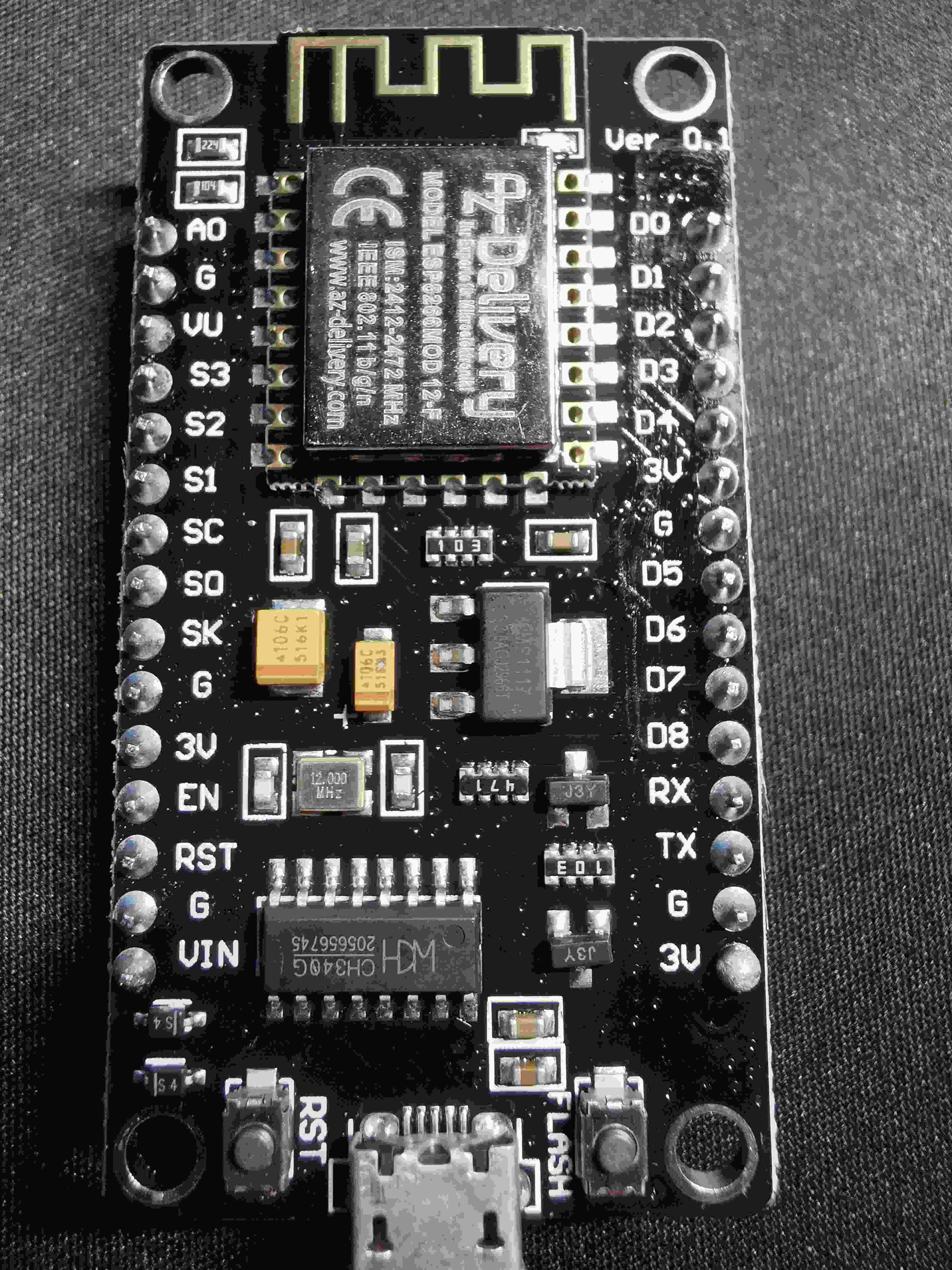 Es ließ mir ja nun keine Ruhe und nun habe ich mir auch so einen ESP8266 nodemcu und den Rest geholt. Ausgepackt, programmiert, aufgebaut und angeschlossen.