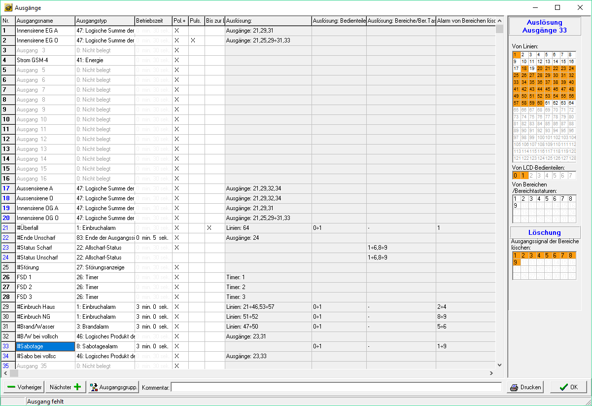 Also ein Programmfehler, dass bei Ausgang 33 in der ersten grauen Spalte "Auslösung Linien" nichts angezeigt wird? |