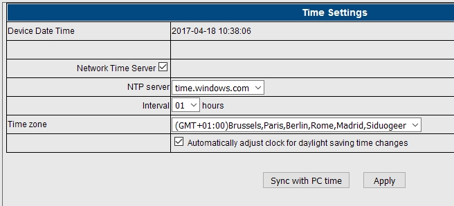 GMT + 1h und die Sommerzeit (automatically adjust) sind eingestellt. Wie gesagt im Kamerabild wird die Zeit auch korrekt angezeigt, nur die EMails haben eine Empfangszeit von 1 Stunde später. Mit dem (chinesischen) Hersteller/Programmierer hatte ich Kontakt aufgenommen, der meinte ich muss meine PC Zeit korrekt einstellen. Die ist aber richtig eingestellt (Windows 10). Oder hab ich irgendwas falsch verstanden bzw. übersehen? |