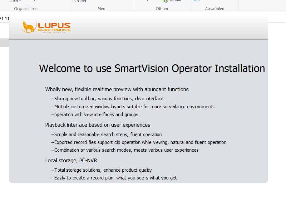 Ich versuche seit Tagen auf meinem Laptop mit Win 10 64 Bit und Avira Virenschutz die Lupus Smartvision zu installieren. Es kommt das Anfangsbild (siehe Anhang) und dann hängt die Sache.. Vielleicht kann mir einer helfen wäre echt super. Danke |