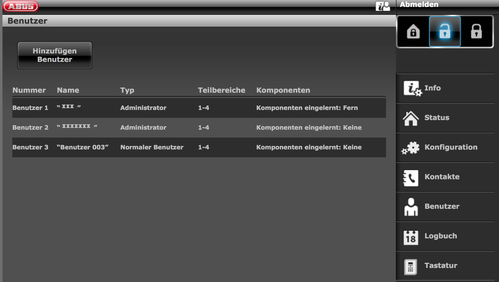 ich habe mir vor geraumer Zeit eine Secvest-Anlage von einem Fachdienstleister einbauen lassen. Nun habe ich eine kleine Frage zum Batterietausch in einem Fensterkontakt. In meinem System gibt es 3 Benutzereinträge: Benutzer 1: Administrator mit Zugangscode (Ich) Benutzer 2: Da steht nur der Name des Dienstleisters ohne irgendeinen Code Benutzer 3: Normaler Benutzer (Familie) siehe Bild Welcher wäre denn jetzt der Errichter, so das ich alleine ohne Probleme die Batterie tauschen kann ?? Schonmal vorab vielen Dank für jegliche Hilfe !! |