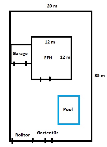 Ich möchte mein Grundstück mit Aussen-BWM überwachen. Ich habe mich bereits für den Funkmelder AOD-200 von Satel entschieden (wird zusammen mit einer Integra EMA von Satel betrieben) Der Abdeckungsbereich hat einen Öffnungswinkel von c.a. 100° und einer Reichweite von c.a. 13m (siehe Anhang). Einen Grundriss des Grundstücks mit EFH, Garage und Pool habe ich als jpg beigefügt. Nun zu meinen Fragen: - Ich möchte ungern die BWM am Zaun oder in dessen Nähe anbringen (quasi Ausrichtung Richtung Haus) da das Risiko einer mutwilligen Beschädigung zu hoch ist. Demzufolge sollten die BWM an den Hausfassaden montiert werden. Wie sollte man in so einem Fall die BWM auf den Haus-Fassaden verteilen? Gerade an den sehr schmalen Bändern auf beiden Seiten des Hauses möchte ich gerne einen Kompromiss zwischen Sicherheit und Kosten treffen. - Wie geht man mit der Ausrichtung des BWM auf der Pool-Seite um, um Fehlalarme durch Sonnenstrahlreflektion zu vermeiden ? - Wenn die reichweite nicht so ohne weiteres digital parametriebar ist, kann man durch Neigen der Halterung nach unten die Abdeckungsreichweite reduzieren ohne an Zuverlässigkeit zu verlieren ? Korrigiert mich bitte ruhig bei meinem Ansatz, sollte mit meiner Idee grundsätzlich etwas nicht stimmen ![]() Danke schonmal für eure Unterstützung ! VG Alex |