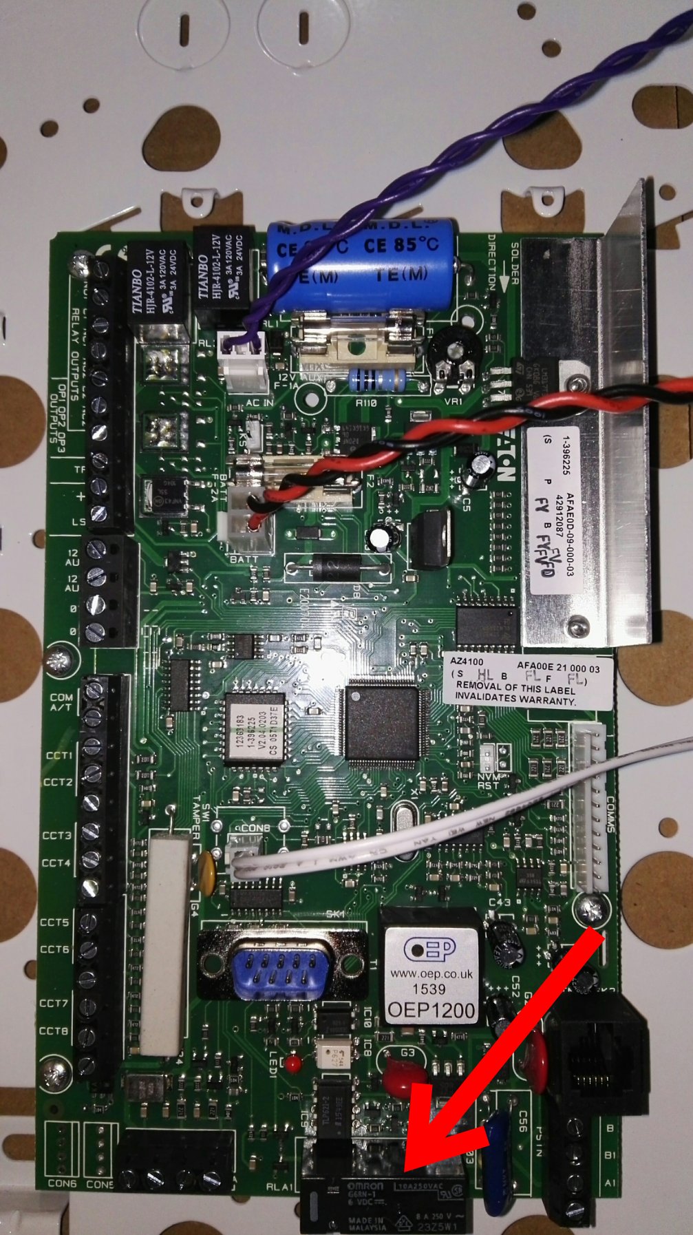 vielen Dank für den Hinweis "Sektionschef". Ich werde den Parameter am Samstag mal überprüfen wenn ich wieder Zuhause bin. @Manfred: Ich habe Dir mal ein Foto angehängt, wo das klackende Relai mit einem roten Feil markiert ist. Ist ein 6V DC Relai mit einer Schaltlast von 250V / 8A (Hersteller Omron) Gruß Björn |
