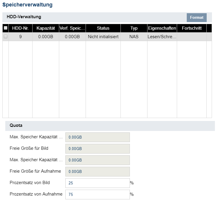 Danke für die Antwort, ich habe mir mal eine passende Bedienungsanleitung von Hikvision herausgesucht und da ist es tatsächlich besser beschrieben, allerdings funktioniert das bei mir nicht wirklich, wenn ich auf formatieren Klicke kommt ein "Geräte Fehler", auf dem Netzlaufwerk sind dann auch alle Daten gelöscht. Ich vermute aber das der Fehler erscheint weil das Netzlaufwerk halt nicht formatiert werden kann.