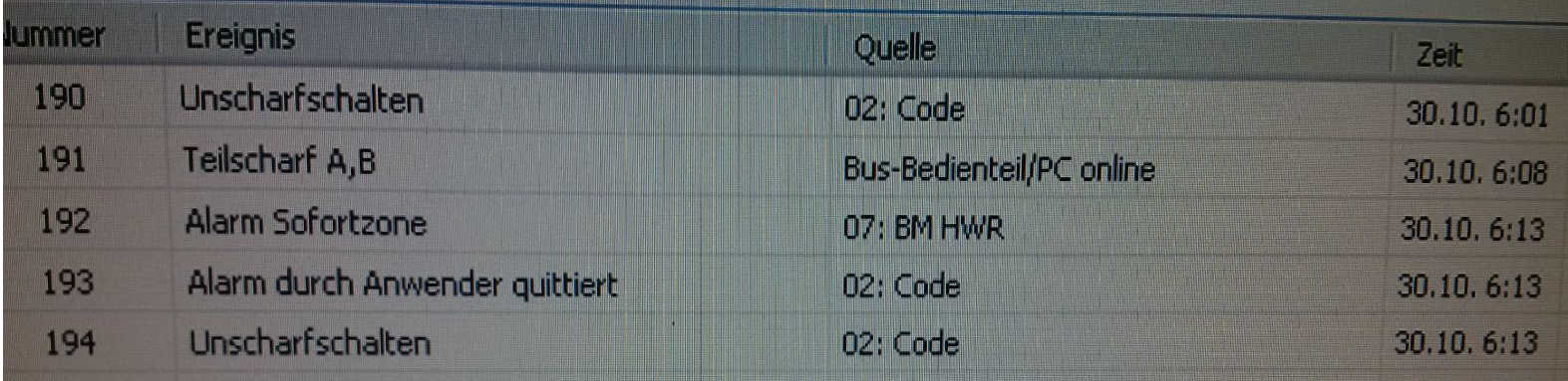 So, jetzt ist die Alarmanlage heute morgen um 7.13 losgegangen.