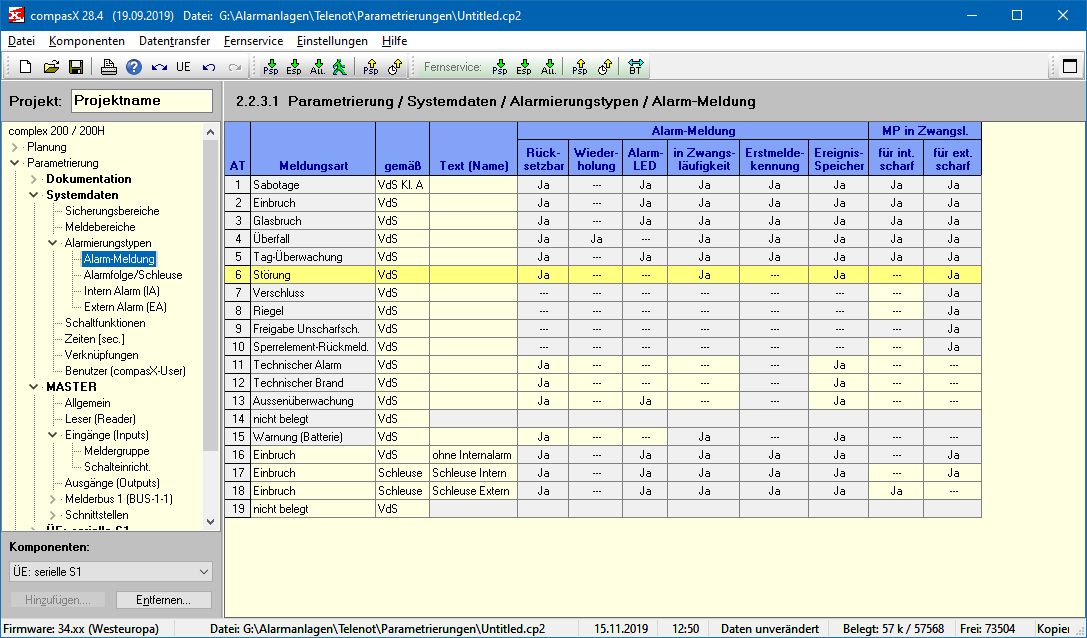 Ich habe es mit den Voreinstellungen für VdS und Akku-Swiss probiert und mit der Auswahl Kunde habe ich den Alarmierungstyp solange verändert, bis kein einziges Ja mehr drinstand. Um dein Verhalten zu erzwingen, muss man wirklich bei den Eingängen die Akkustörung abschalten. Eine Veränderung des ausgewählten Alarmierungstyps bringt nichts. Ich habe es jetzt mit einer cpx400H getestet, Fw 34.72 mit dem dafür zwingend notwendigen CompasX 24.2. Eine cpx200H habe ich nicht hier. Wenn müsste ich mal meine compact easy, die auf dem Schreibtisch im Büro zur Transponderverschlüsselung steht, mal dafür missbrauchen. Was geht, ist den Akku abzuziehen, wenn man die Scharfschaltung schon begonnen hat. Aber hier reden wir von zwei Sekunden, die man hat, bevor die Akkuüberwachung meldet, dass der Akku nicht in Ordnung ist. Du hast jetzt nur scharfschalten geschrieben. Hast du extern oder intern scharf geschaltet? Die Scharfschaltverhinderung gilt nur für extern scharf. Intern geht (eigentlich fast immer. - Störungen interessiert die Anlage da nicht) |