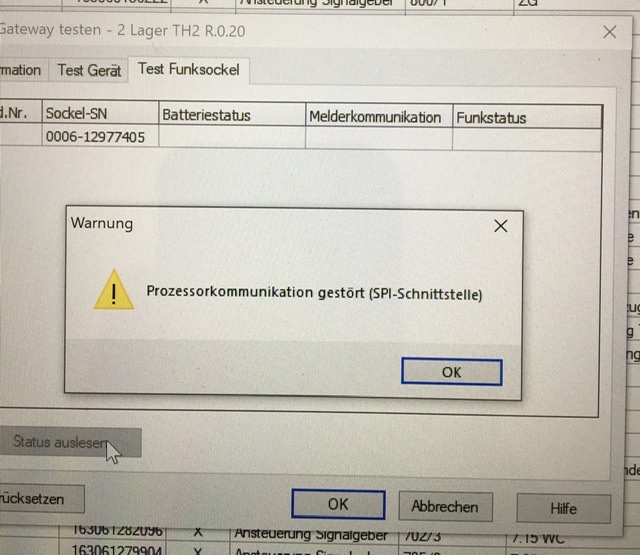 https://www.esser-systems.com/fileadmin/...ung_RF.pdf Obwohl die angezeigte Fehlermeldung verwirrend ist, weil das Serial Peripheral Interface für die Anbindung von Peripheriegeräte dient, wie z.B. das Fat 4000 und nicht für Funkkoppler. Was sagt der Ereignisspeicher ? |