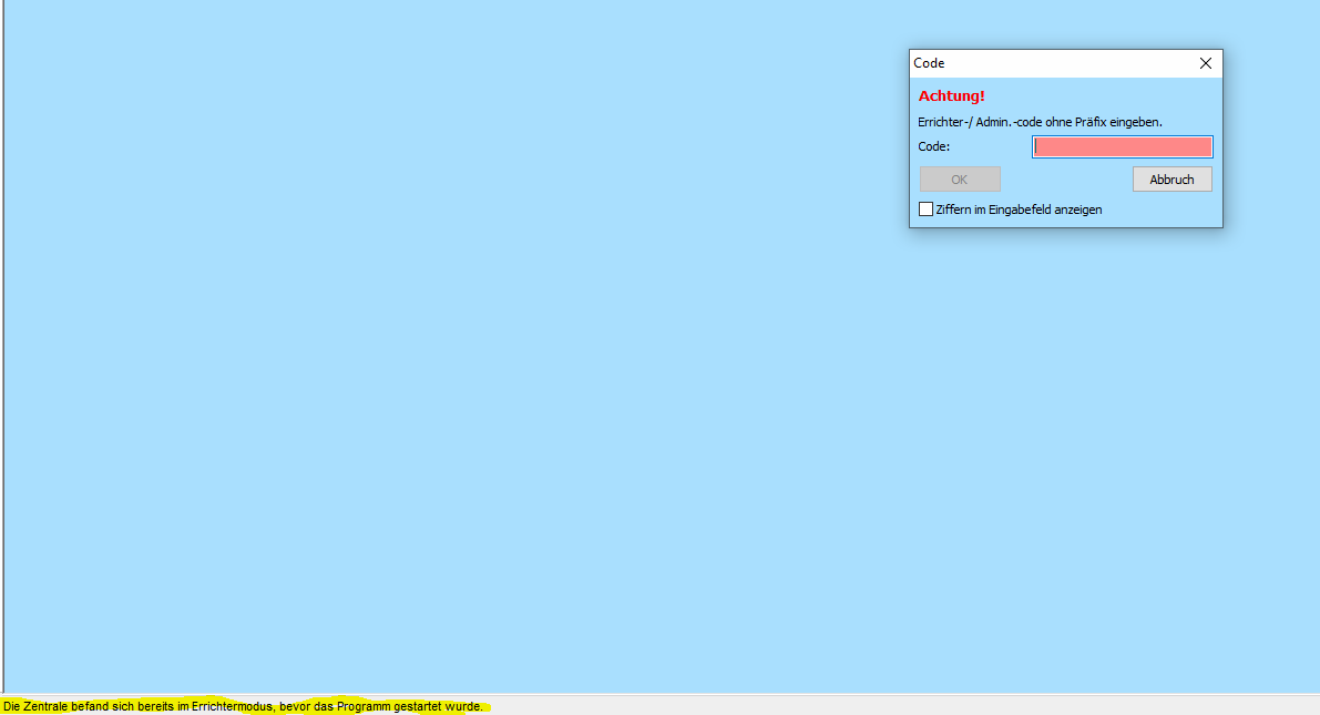 die JA-100 befindet sich im Errichter oder Wartungsmodus. Mit Hilfe der F-Link (Errichtersoftware) können nun die Codes dafür geändert und die Anlage programmiert werden. Mit der J-Link (Endanwendersoftware) geht dies nicht, hier musst Du Dir Hilfe von einem Errichter holen, der die Anlage nach Deinen Wünschen programmiert und bestenfalls Dich auch bei der Installation der Komponenten unterstützt oder besser noch dies übernimmt. Weiterhin wirst Du auch die Firmwareupdates der Anlage ohne Errichter nicht einspielen können.