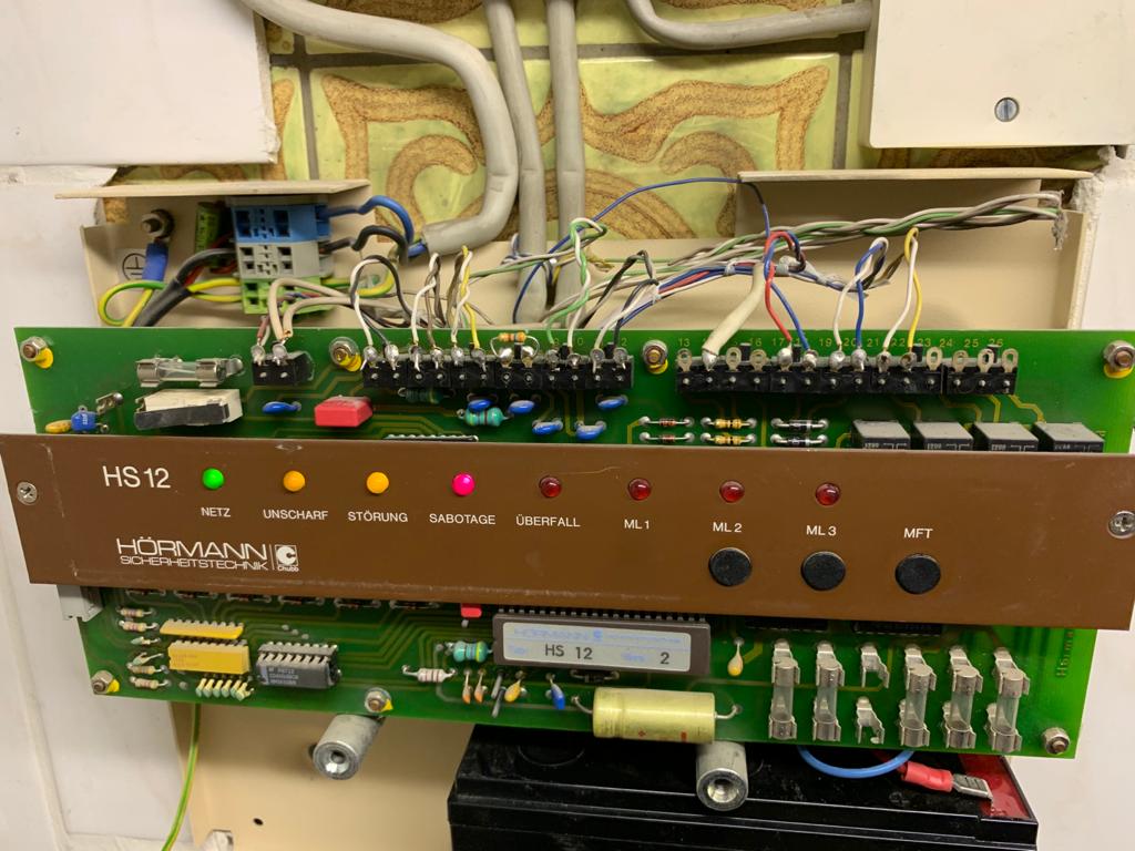 ich habe gestern mal in meinen Memoiren gestöbert, aber leider nix mehr gefunden. Verbaut habe ich sowas 1990 rum.... Die Anlage ist auf jeden Fall um die 30 Jahre alt. Das ist quasi der Vorgänger der HS4. Wenn ich mich recht erinnere, hat sie 3 Linien plus Überfall, plus Sabo und einen Schlüsselschalter/Blockschlosseingang. Die Linienwiderstände lagen wohl bei 4,7 kOhm. Habe gerade das Foto gesehen..... Alsooooo: Ab Pin 5 bis 12 sind die Linien, wobei 7/8 die Überfalllinie ist. Welcher Eingang was ist, siehst Du, wenn du einfach mal den jeweiligen Stecker abziehst und guckst, welche LED angeht. 1/2 müsste der Schlüsselschalter sein. Das war bei der HS 4 nur 10kOhm unscharf, Brücke/offen war scharf. Musst Du mal messen. 3/4 wäre dann die Sabo. (oder umgekehrt) 17/18 müssten die 12V-Versorgung der Bewegungsmelder/Wählgerät etc. sein. 19/20 Blitzleuchte; 21/22 Sirene Bei Hörmann wirst Du nicht viel Glück haben, die sind zig mal verkauft worden und die ganzen guten Leute sind weg.. Das war erst Hörmann, dann Hörmann/Chubb, dann wieder Hörmann, dann Grundig. (Grundig hatte sie gekauft, und damit ihre "Jubelelektronik"-Sparte versucht zu retten.) Hörmann jetzt ist nur noch Sirenentechnik; die haben damals die lauteste Sirene der Welt entwickelt und gebaut. Grüße ToWo PS: Welche/r Fehler besteht denn konkret? |