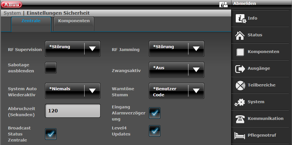 Level 4 ist nur für das Fernupdate über den Errichter.