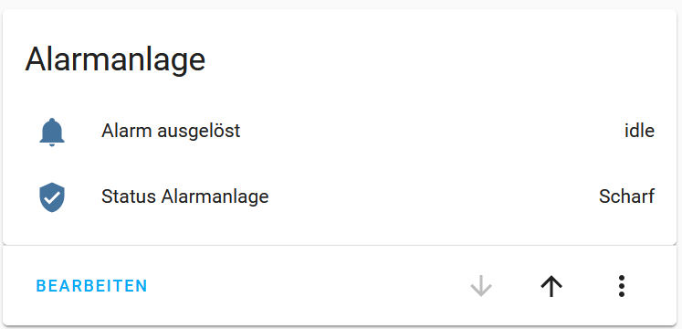 das mit OP2 und OP3 funktioniert mit dem Fibaro implant. D.h. ich hab jetzt in meinem Home Assistant eine Anzeige wie im Anhang ersichtlich. Ich muss dann noch die Zone für den Schlüsselschalter vorbereiten und ich werde auch mal testen ob man einen der zusätzlichen Ausgänge auch verwenden kann um die Stati wie im Bild darzustellen. |