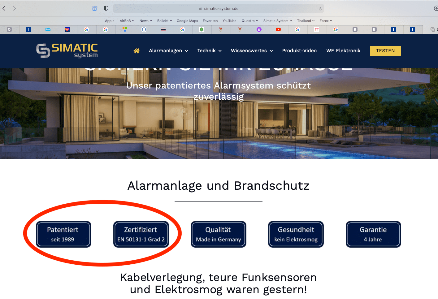 Auf der Website von der Firma Simatic-System.de wird einem vorgegaukelt, dass das Produkt welches diese Firma von WE-Elektronik einkauft und unter MOWITEC anbietet, "Zertifiziert" und "Patentiert seit 1989" sei. Belege hierfür gibt es nicht. Gerade den Bezug auf die Zertifizierung grenzt das schon an Betrug. Einen Screenshot der Webseite vom 04.10.2021 füge ich bei. Des weiteren gibt es mit diesem System weitere Probleme, denn einen echten Schutz (ohne Kabel und ohne Funk) kann diese Anlage nicht bieten. Aktuell gibt es schon eine Klage von einem Kunden gegen dieses Unternehmen wegen nicht Funktionalität. Ergo finger von diesem Produkt und von dieser Firma, sowohl als Kunde als auch als Vertriebspartner. |