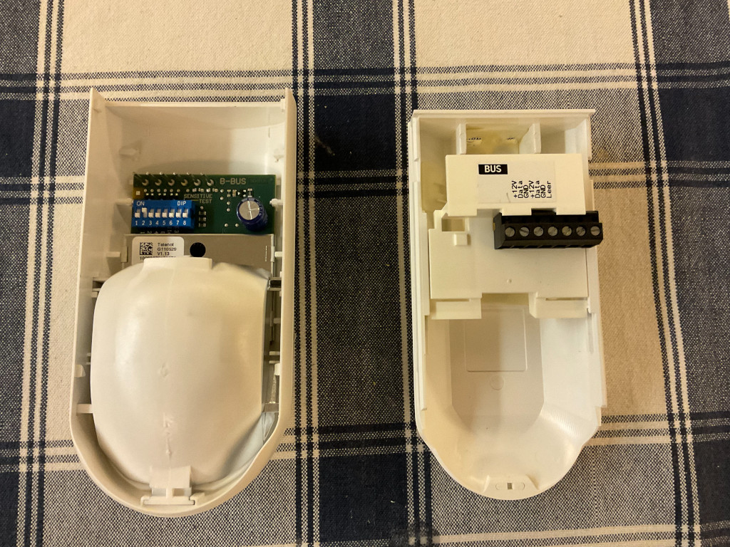 21. November 2021: Telenot MK4 Magnetkontakt, weiß, mit Aufbaugehäuse, originalverpackt. Da habe ich mich mal vertan, weil ich den Typ persönlich nicht einsetze. Menge: 4 Preis: 8€ pro Stück Honeywell IK2 BUS2-AWE, Stoko-Klemmen fehlen, Kabelausbrüche nur auf einer Deckelseite. Menge: 1 Preis: 20€ pro Stück Honeywell IK2/ZK1-Ein/Aus-Bedienteil, war im Innenbereich montiert, Montagesockel hat oben einen Kabelausbruch, 85cm Restkabel Menge: 1 Preis: 20€ pro Stück Telenot comstar B15 BUS, Melder im Colani-Design, alte Sockelbauform, Klemmenschlitten vorhanden, zwei Kabelausbrüche, zwei offene Befestigungspunkte, leichte Verfärbung des Meldergehäuses, mittlere Verfärbung des Sockels Menge: 1 Preis: 20€ pro Stück Telenot REL8 Relais-Platine, für den Einsatz an der parallelen S1 oder individuell verdrahtet. Durch 12V-Ansteuerung auch anderweitig nutzbar. Kein Anschlusskabel oder Befestigungsmaterial dabei, eine Stoko-Klemme fehlt. Auf dem Bild links zu sehen Menge: 1 Preis: 10€ pro Stück Telenot com2bus-Expander, erweitert eine Complex 400 oder 400h von 2+Z auf 8+Z rückwirkungsfreie com2bus-Stränge, z.B. für gesonderte Sicherungsbereiche Mit Anschlusskabel und Befestigungsmaterial. Auf dem Bild rechts zu sehen. Menge: 1 Preis: 50€ pro Stück Honeywell BUS1-Schaltmodul 24V, Ein-Kanal-Schaltmodul, funktioniert an Telenot und effeff/Honeywell-BUS1-Anlagen Menge: 1 Preis: 20€ pro Stück Telenot cryplock R-MD Version 1 (mifare Classic), weiß, war im Außenbereich installiert (Nordseite), sehr guter optischer Zustand, 90cm Restkabel Menge: 1 Preis: 75€ pro Stück |