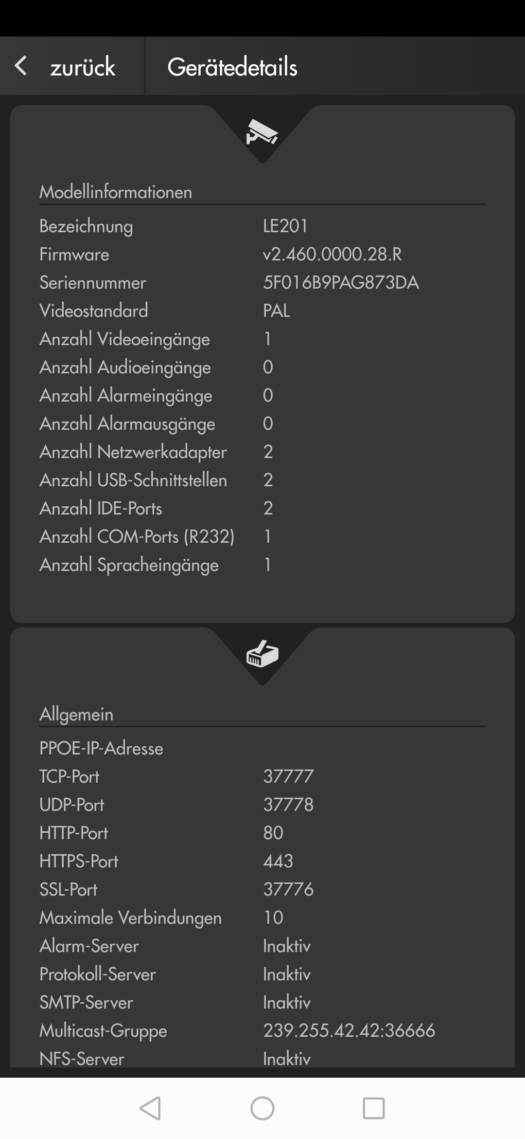 ich habe schon in einigen treads rumgestöbert, aber leider nichts zu meinem Problem finden können. Daher schildere ich mal mein Problem. Ich habe schon seit längerem eine L201 in Benutzung und nun zusätzlich eine L204 angeschafft. Da ich wirklich nur ein Anwender bin und kein Kenner der Materie, war ich schon sehr froh, dass ich die L201 mit Portweiterleitung in der FritzBox 7590 und dem DDNS Service von der Lupus Seite installieren konnte. Die Installation der L204 stellte ich mir ähnlich vor, hatte aber Probleme eine Verbindung herzustellen, bzw. auch über das Internet auf die Kameras zugreifen zu können. Nachdem ich mit dem Lupus DDNS Service nicht voran gekommen bin, habe ich den DDNS Service von NO IP eingerichtet, womit alles auch wieder funktionierte. Mein Problem ist nun, dass ich auf das Webinterface der Kameras nicht mehr zugreifen kann, was ja vorher mit der LE201 problemlos über die IP Adresse möglich war. Mit der Eingabe der Kamera IP´s in meinen Browser (Google Chrome/Win10) öffnet sich das Webinterface nicht mehr, als wenn es die Kamera gar nicht gibt. In der FritzBox wird neuerdings auch nicht mehr die Kamera an sich angezeigt, sondern nur die Seriennummer. Die FritzBox sagt mir auch, dass Portweiterleitungen eingerichtet sind, allerdings wird in der Rubrik FREIGABE und PORTWEITERLEITUNG überhaupt keine Portweiterleitung angezeigt. Alles eigentlich nicht so wahnsinnig dramatisch, aber ich möchte gerne bei den Kameras den Nachtsichtmodus ausstellen und das geht scheinbar nur über die Bedieneroberfläche am PC. Ich möchte diesen ausschalten, da im Dunkeln immer Daueraufnahmen produziert werden. Tagsüber funktioniert die Bewegungserkennung bestens. Über die Lupus App kann ich den Nachtmodus nicht ausschalten, oder doch? Habt Ihr eine Lösungsmöglichkeit für mich? Ich habe Sorge, dass wenn ich versuche wieder auf den DDNS Service von Lupus umzustellen, dass dann wieder nichts funktioniert. Allerdings sind diese nächtlichen Daueraufnahmen so speicherintensiv, dass ich mit meinen eingelegten Speicherkarten in den Kameras nur noch wenige Tage rückwirkend anschauen kann. Ich würde mich sehr über eine Lösungsmöglichkeit freuen, oder eine Hilfestellung für Anfänger. Anbei ein paar Screenshots meiner Kameras aus der Lupus App Vielen Dank im Voraus Michaela |