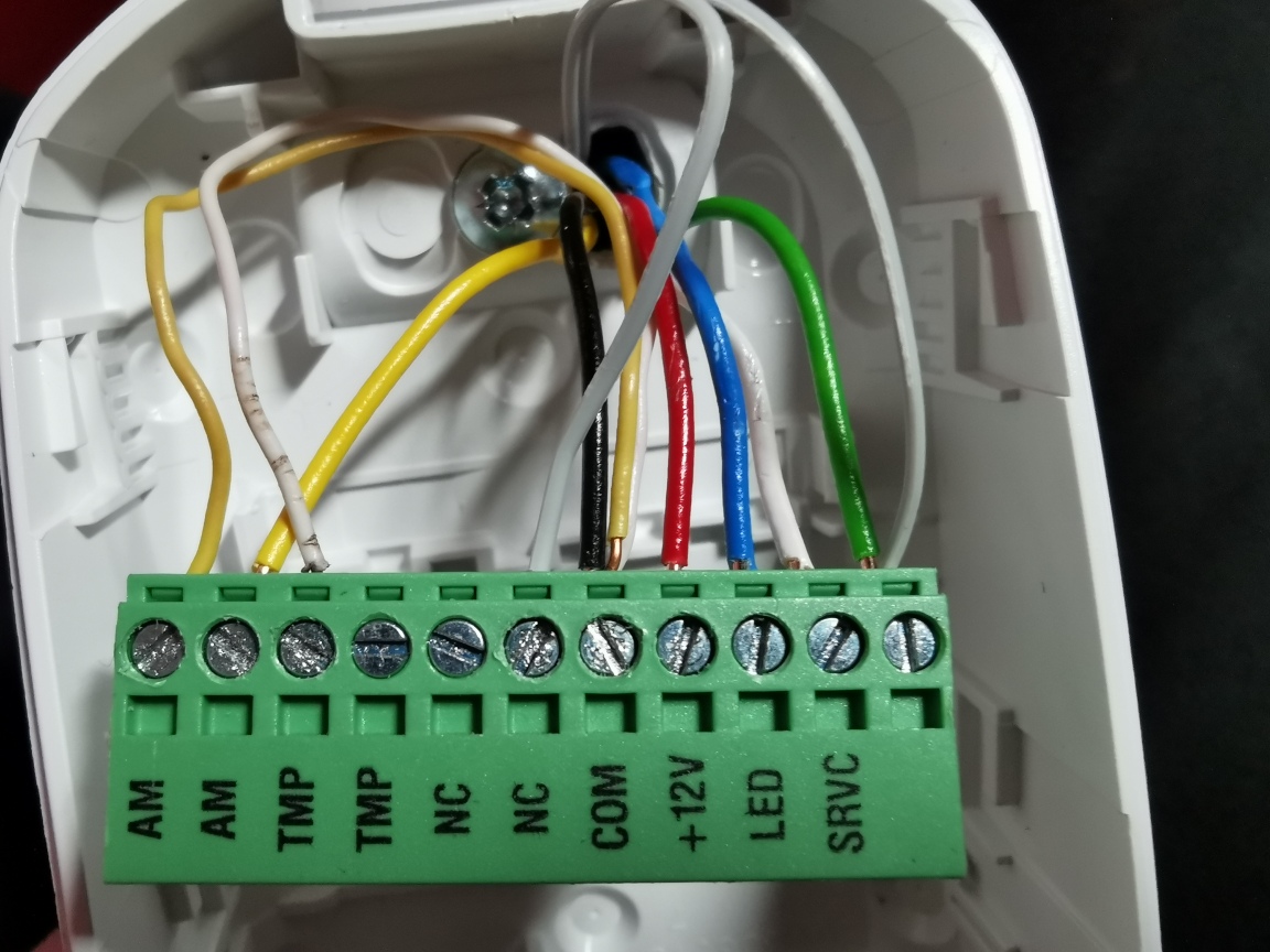 bin neu hier im Forum und habe schon viel gesucht, aber zu den Meldern nichts gefunden. Ich versuche einen SLIM-DUAL-PRO Melder an einer Integra 128 Plus anzuschließen, bekomme aber immer Sabotage Meldungen. Gehäuse vom Melder ist geschlossen. Jumper und DLOADX als 2EOL/NC: Z1: gelb Z2: grün Com: schwarz gebrückt auf AM und TMP +12V: rot SRVC: weiß LED: blau Hat jemand eine Idee? |