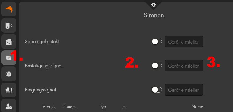 Und da hast vorher den Schalter auch nicht auf "An", also Gelb geschaltet? Der Fehler passiert mir gerne mal beim Sabo-Kontakt... Wenn du "Gerät einstellen" klickst, quittiert die Außensirene das per Ton? Wenn nicht, kommt das Kommando vermutlich nicht an... |