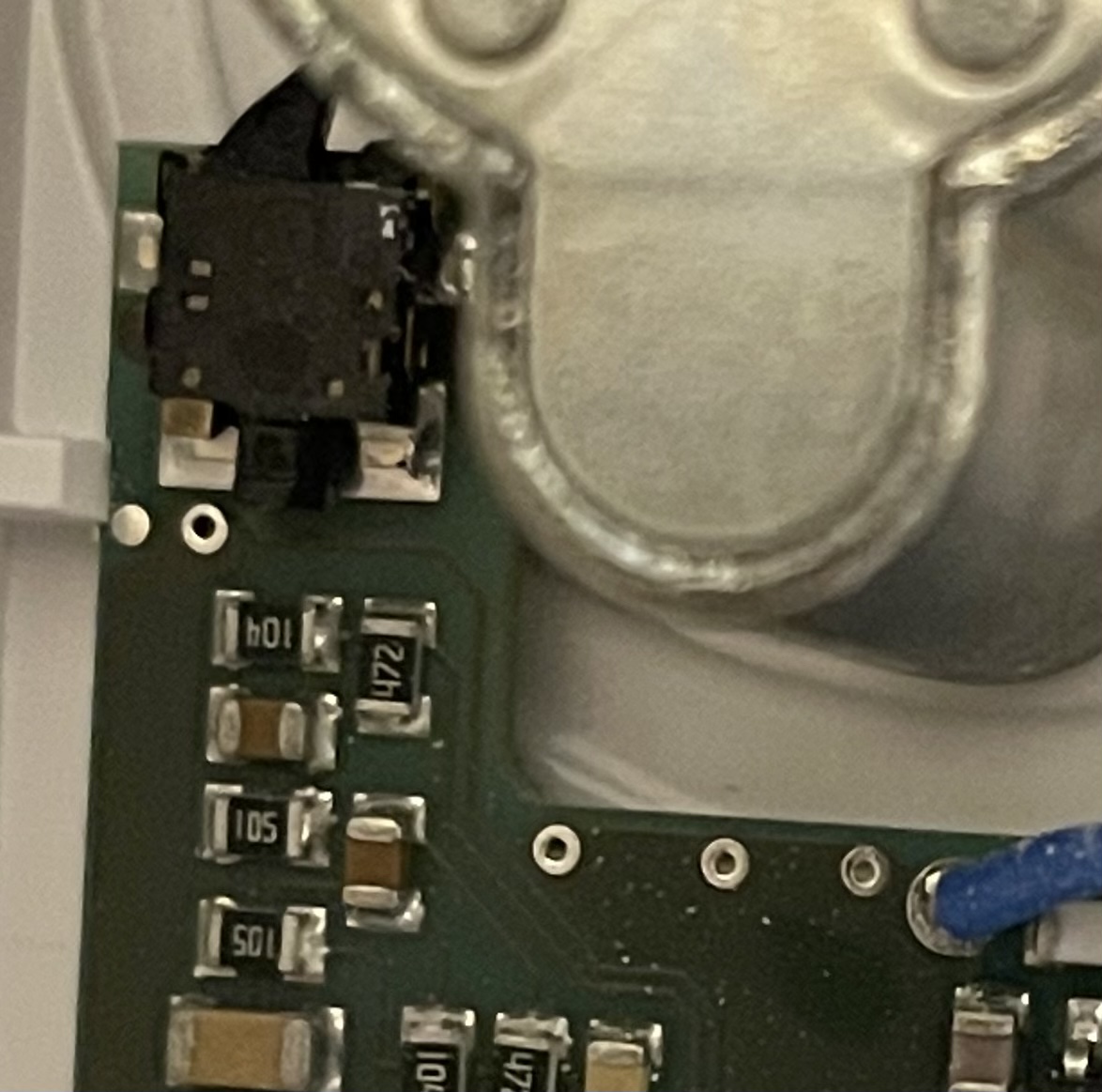 Ich habe mich vielleicht nicht präzise genug formuliert: Der schwarze Kasten des Mikroschalters ist leicht verrutscht und zwar so viel, dass kein (guter) Kontakt gibt. Ist eventuell auf dem Foto nicht sofort erkennbar.