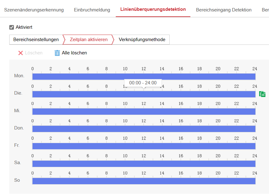 meinst Du direkt bei den Ereignissen? Ja, sind jeden Wochentag von 00:00 Uhr bis 24:00 Uhr eingestellt. HiK Vision DS-2CD2046G2-I |