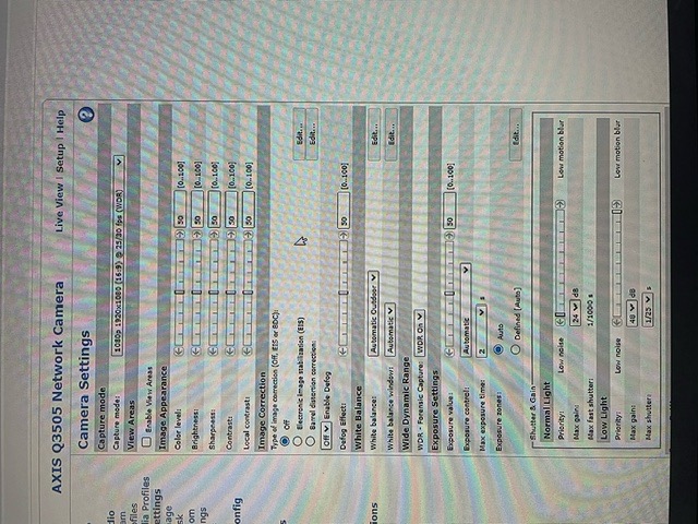 Habe mir die Einstellungen angesehen. Deaktiviere mal WDR (ist bei AXIS stets als Standard auf on gestellt) und schau Dir das Ergebnis an.