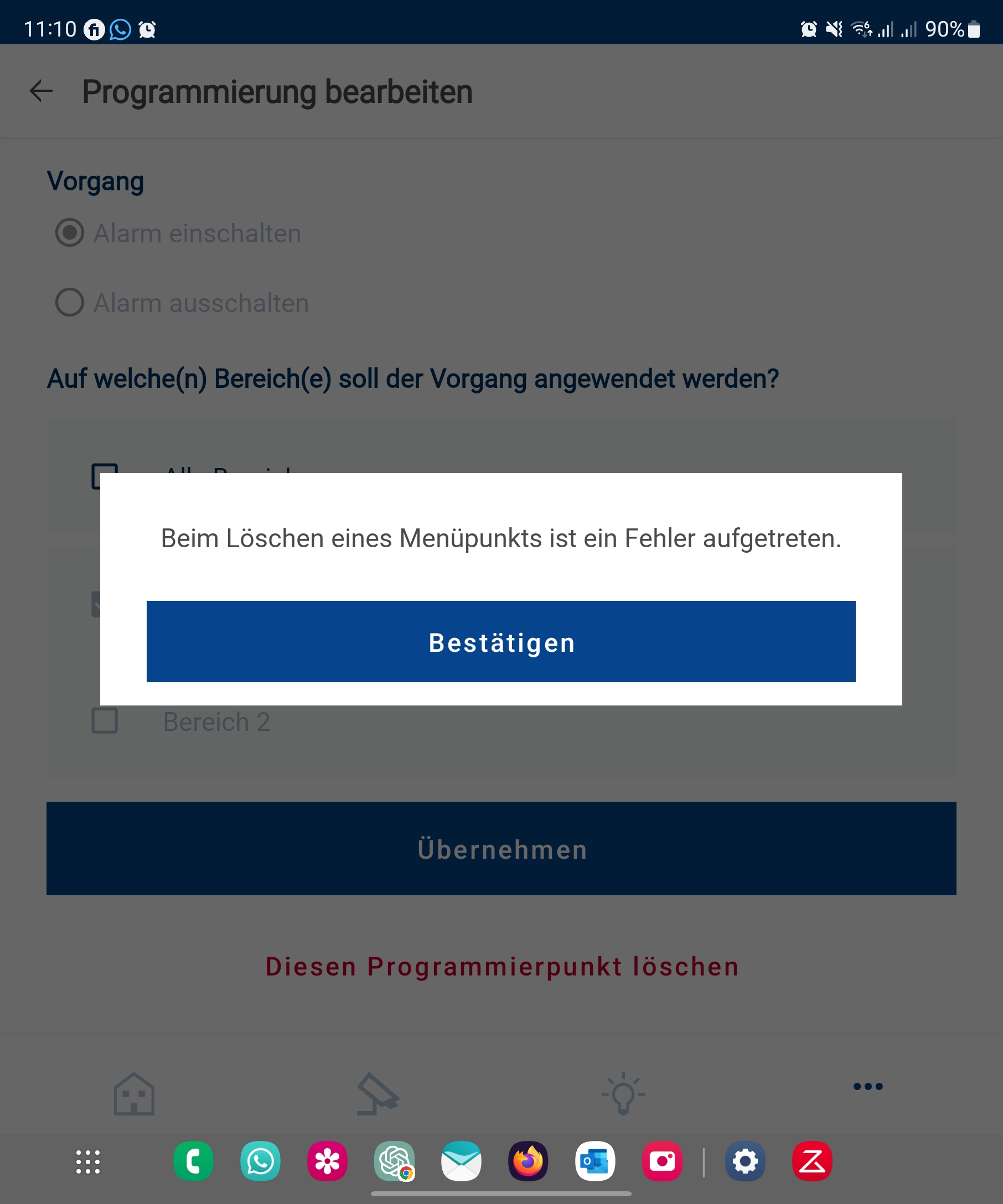 D22 Zeitgesteuerte Alarme lässt sich nicht mehr aktivieren in der App