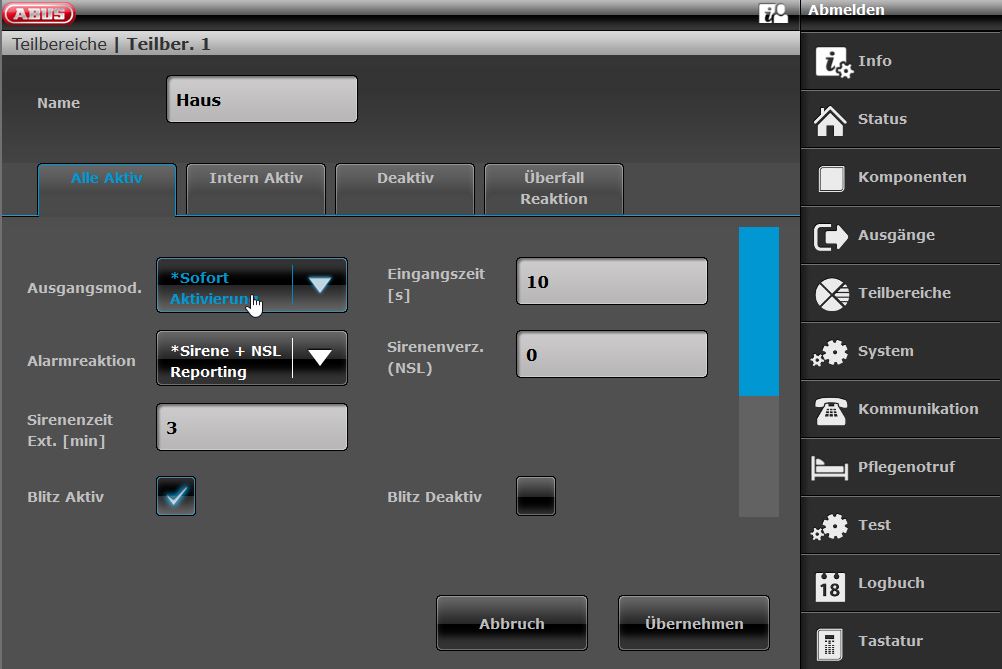 Hallo Sebastian, hast du bei Teilbereiche - Alle Aktiv bei Ausgangsmodus Sofort Aktivierung eingestellt?