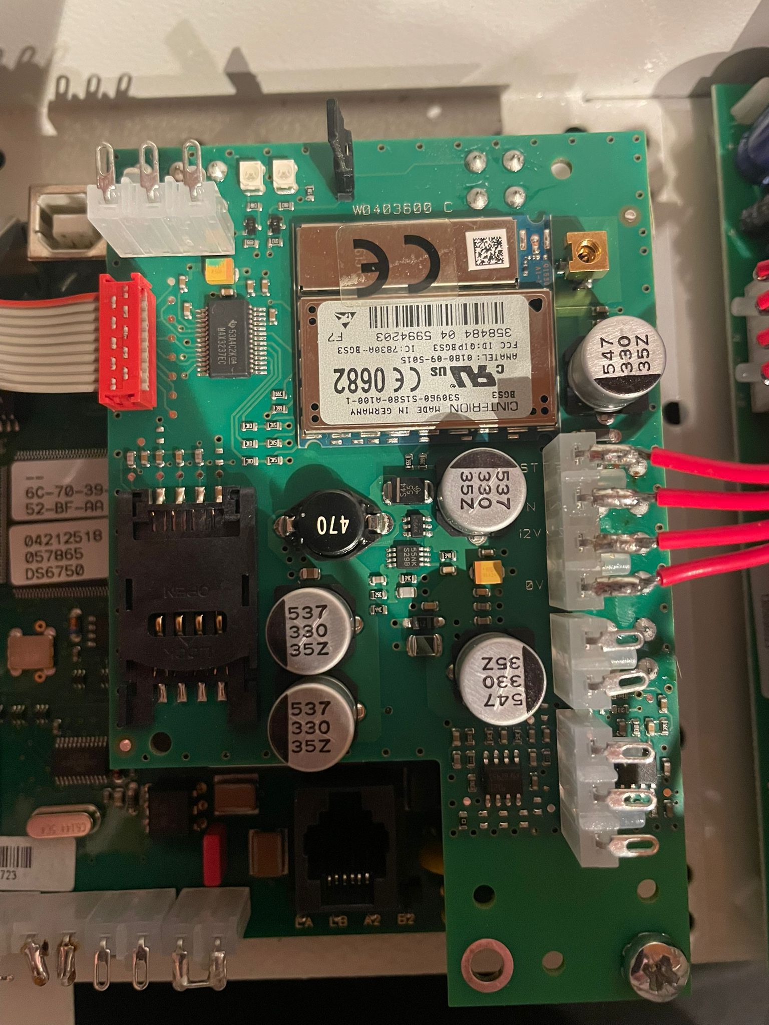 Der Zwangsläufigkeitsausgang auf dem ÜG ist der richtige für Störungsrückmeldungen, der liegt oben unter dem Funkweg. Für Sprache über Mobilfunk fehlt dir noch ein dreipoliges Kabel, welches das ÜG mit dem Funkweg verbindet, das kann man aber einfach selber Löten. Kommt auf die unteren 3 Pins am Funkweg und von da zum DS. Der erste Funkweg ist der alte 2G, der zweite die 3G Version. Macht keinen Unterschied, weil es UMTS nicht mehr gibt. Du brauchst einfach ein Telefonanschlußkabel mit nem TAE Stecker, dann kannst du das direkt anlöten auf die Pins unter der RJ11 Buchse, La und Lb reichen, wenn dahinter nichts mehr angeschlossen werden soll. |