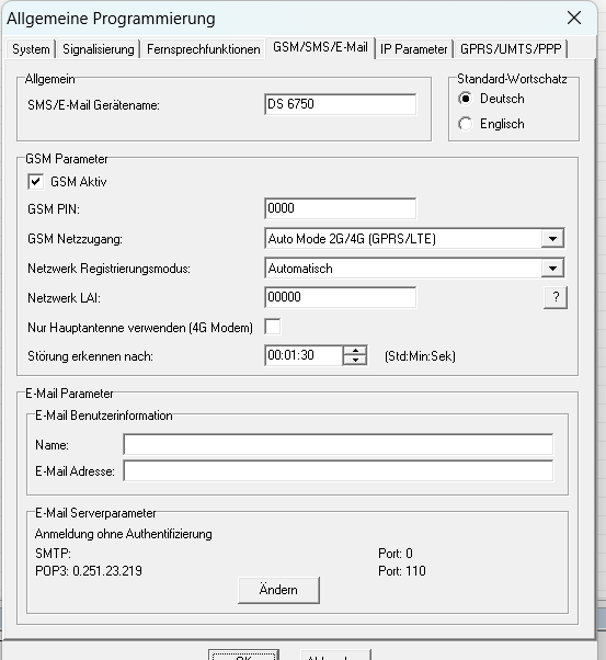 Die 00 hatte ich beim letzten Kunden so eingetragen, da war das das erste Mal, dass ich das programmiert hatte, die hatten das DS an der Telefonanlage, aber sonst soweit sollte das aber passen mit der Programmierung? |