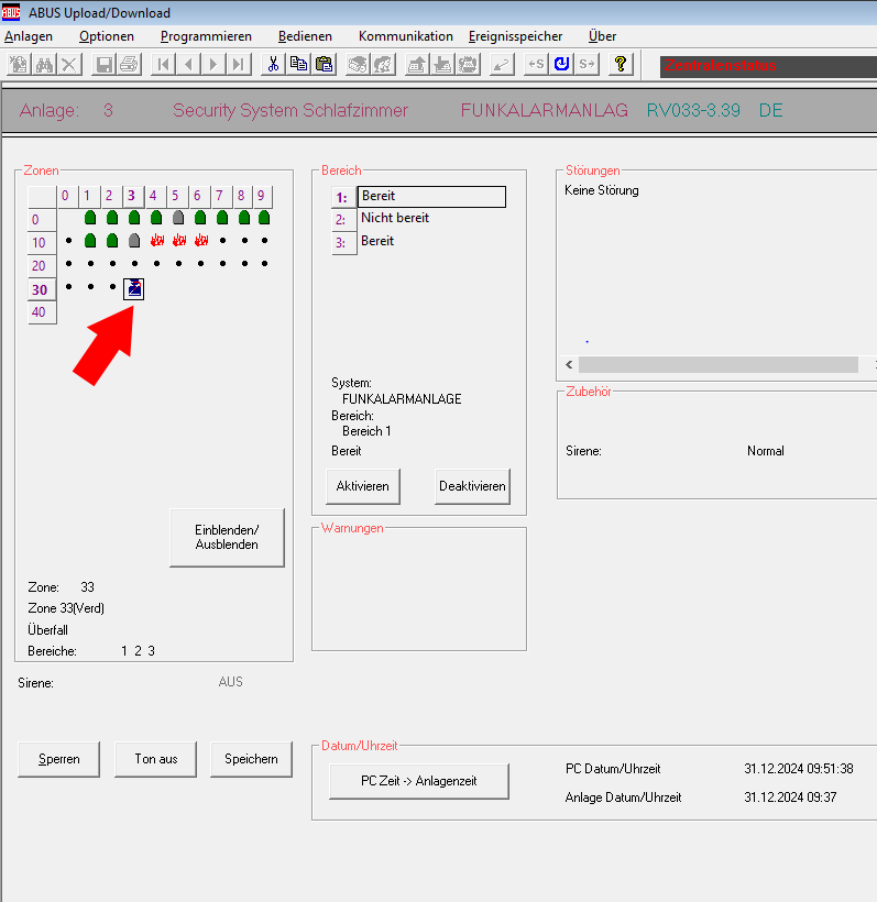 Unten steht "Zone 33 Überfall" also vermutlich ist das Symbol für Überfallalarm.