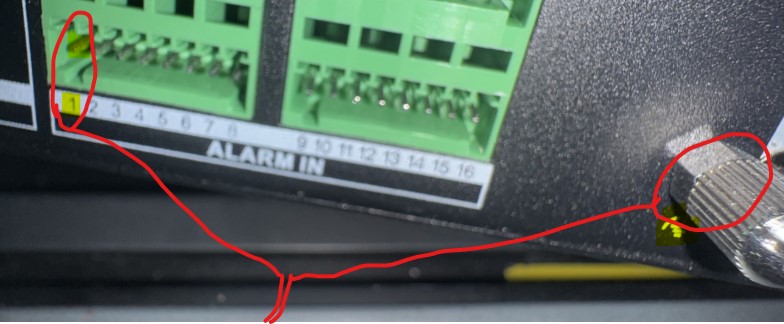 Ich habe Dir mal die Verkabelung in einem Kunstwerk gezeichnet und hier als Anhang hochgeladen. Der eine Draht wird mit Alarmeingang 1 verbunden und der andere kommt an die Ground / Masse Schraube. Wichtig: Konfiguration nicht vergessen. Ist noch die alte NVR 4.0 Firmware oder bereits die neue 5.0 installiert? |