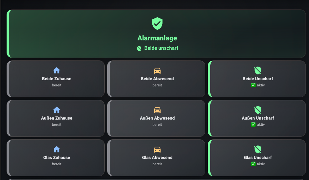 Persönlich: Tüftel gerne, kann aber keine einzige Zeile Code schreiben. Ausgangslage: Betreiber Home Assistant als VM unter Proxmox. Ziel: Secvest mit allen Meldern / Funktionen zu integrieren Aktueller Stand: Dank ChatGPT habe ich folgendes geschafft: - ABUS Secvest Integration schreiben lassen - Alle Melder als Entities in Home Assistant - Anlage kann ich aktivieren und deaktivieren - Erhalte Meldungen, wenn Batterie schwach ist mit sprechendem Namen und Nicht wie in der APP Z215 Aktuell versuche ich noch die Übersicht der Funkzonen Komponenten nachzubauen. Dann brauch ich weder mich per Browser einzuloggen, noch deren APP. Wer hat ein ähnliches Projekt am Start? Wer hat Anregungen, was vielleicht noch toll wäre? Wichtig: Ich mache das in meiner Freizeit, also nur sporadisch. |