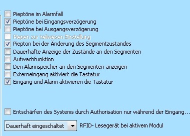Es klappt jetzt. Die Lösung ist tatsächlich den Haken bei der Aufwachfunktion wegzulassen. Nur bei "Eingang und Alarm aktivieren die Tastatur" ist er noch drin. Das Bedienteil wacht bei der Eingangsverzögerung auf und ist für die Unscharfschaltung bereit. Grüße Moritz |