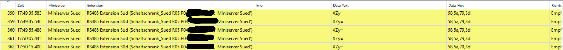 Laut Elektriker ist alles korrekt verdrahtet und laut Alarmanlagen Techniker ist alles korrekt in der F-Link Software konfiguriert (er hat mir das Foto im Anhang geschickt). Trotzdem kann ich keine Befehle via Loxone senden und auch keine der Sensoren/Kontakte in Loxone abgreifen. Ich habe die Einstellungen in Loxone mehrfach überprüft (Baudrate, Stopbits, etc). Diese stimmen. Aber ich komme nicht weiter. Leider kennen sich Elektriker und Alarmanlagen Techniker (offenbar) nicht näher damit aus. Daher ist meine Hoffnung, dass mir hier jemand weiterhelfen kann. Es würde schon helfen, wenn ich den Fachexperten (Alarmanlagentechniker, Elektriker) sagen kann, wo und wie sie weiter suchen/konfigurieren sollen. Für micht scheint es so, als wäre die Jablotron Schnittstelle in der F-Link Software nicht korrekt programmiert. Aber da habe ich eben keinen Einblick und der Techniker meint, das ist alles richtig konfiguriert. Auf dem zweiten Foto sieht man, dass ich auf der RS485 Schnittstelle im Loxone system die 10 sekunden "lebenszeichen" der JA-121T erhalte (glaube ich zumindest). Aber eben im falschen Format und auch die ganzen Befehle (wie statusabfrage, help, ver, etc) an die Jablotorin funktionieren nicht. Ich würde mich freuen, wenn jemand hier einen klugen Vorschlag hätte. Danke schonmal! |