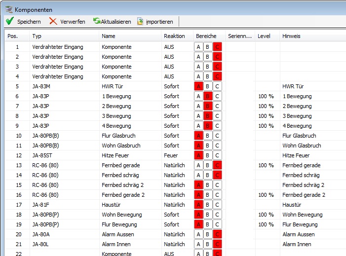 Hallo ich habe meine Alarmanlage versucht zu konfigurieren und habe in zwei Bereichen die Sensoren verteilt. Wenn ich nun A oder AB scharf stelle ist alles io und geht. Stelle ich aber ABC ein geht sofort der Alarm los. Ich sehe aber keine Ereignisse später in der OLink-Software.