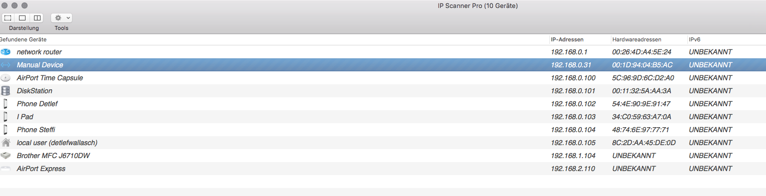Hatte das Gerät offen, somit Garantie erloschen...Hauptsache es ist Frieden. ;-) Die kleine runde Batterie habe ich nicht entfernt. vlt. hab ich dadurch noch ne halbe Garantie. :-) IP 192.168.0.31 in den IP Finder gegeben mit MAC Adresse vom Typenschild der Lupus... ohne Erfolg. IP 192.168.0.31 direkt in den Browser ( Safari ) eingegeben => Nichts MAC Adresse vom Typenschild der Lupus in den Browser ( wie auf Schild, nur mit einer Doppelpunkt Trennung ) eingegeben => Nichts MAC Adresse mit Doppelpunkt nach je zwei Zahlen / Ziffern eingegeben => Nichts. Habe die IP gelingt => No Route to Host ??? Was bedeutet das nun schon wieder ? Anzeige des IP Finders mit manueller Eingabe der IP und der MAC Adresse. |