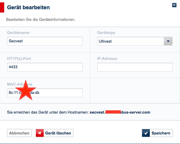 Die Secvest findet sich bei richtig eingestellten Parameter, automatisch im Server. Außerdem kannst du dem Speedport nicht vom Heimnetzwerk auf deine Secvest über den externen Link oder App zugreifen. |