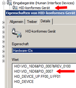 Um sicherzustellen das das USB-Gerät auch erkannt wurde, schau im Gerätemanager nach unter Eingabegeräte. Dann suche im Submenübaum nach HID-Konformes Gerät. Kann sein das da mehrere sind. Gehe jeden einzelnen durch und schau dann im Registerreiter "Details" unter "Hardware ID". Dort muss dann die Kombination VID/Pid folgendermassen auftauchen VID_16D6&PID_0007. Sieh auch den Anhang, da kann man es sehr schön sehen. Sollte er da so vorhanden sein, schau auch ob Olink Online ist. Hatte erst heute das Erlebnis, dass Olink auf einmal die Zentrale nicht erkennen wollte und sah dann oben im Titel offline. Hier Online drücken und schon ging es dann. Gruß Chris Murphys Law: Man hat niemals Zeit, es richtig zu machen, aber immer Zeit, es noch einmal zu machen. |