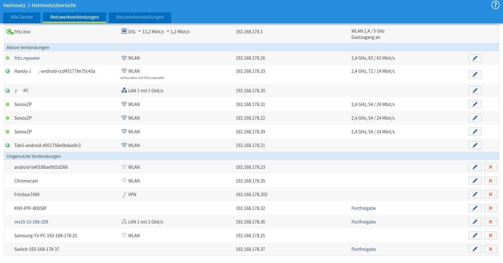 die Einstellung "DHCP Mode Selection" im Netgear-Switch muss auf "enable" stehen, dann zieht sich der Switch eine IP-Adresse von der Fritzbox (sofern denn in dieser der Modus "DHCP-Server" aktiv ist). Wenn der Switch keine IP-Adresse zugewiesen bekommt, geht er nach einiger Zeit ('Timeout') davon aus, dass es keinen DHCP-Server im Netzwerk gibt und gibt sich selbst die Adresse 192.168.0.239. Kannst du den Switch über diese IP pingen, wenn er nicht mehr in der Fritzbox-Übersicht auftaucht? Sofern sich alle Netzwerkgeräte in der gleichen IP-Range (die Range der Fritzbox) befinden, sollten sie auch alle in der Netzwerkübersicht der Fritzbox aufgeführt werden. Alternativ kannst du ja mal einen anderen freien IP-Scanner drüberlaufen lassen, dann hast du unabhängig von der Fritzbox eine 'neutrale' Liste aller aktuell angeschlossenen Geräte. Ausnahmen gibt es bei einigen Switchen, die aus Energiespargründen sogar portweise in eine Art Sleep-Mode verfallen können, wenn auf dem jeweiligen Hardware-Port für eine gewisse Zeit x kein Traffic mehr läuft. So auf die Schnelle habe ich in der Anleitung deines Netgear aber nichts derartiges gefunden. Also, benenne uns mal die IP-Adressen deiner Geräte und dann können wir weiter sehen. VG Olli Keine Haftung für Sach- oder Personenschäden. Die sach- und fachgerechte Umsetzung liegt beim Ausführenden. Alle gängigen Normen und Vorschriften sind zu beachten, sonst siehe Avatar... Bitte keine technischen Anfragen per Email oder PN stellen, sondern offen im Forum posten, danke! |