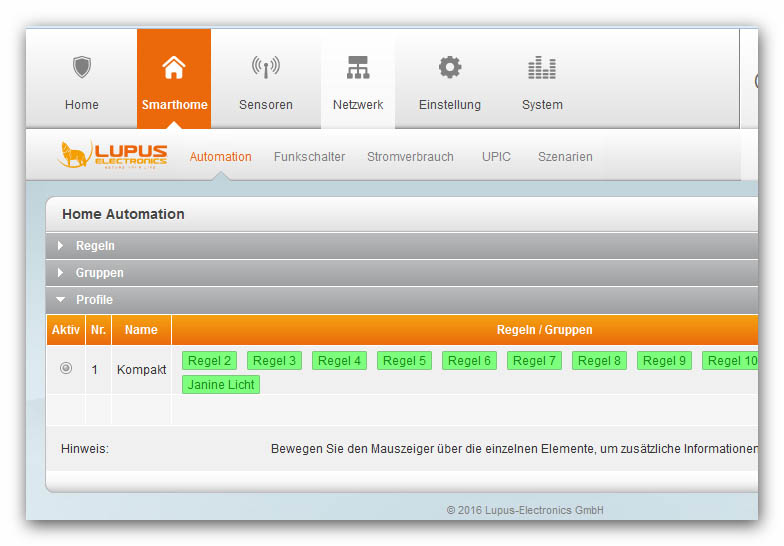 Problem gelöst. Lupusec Support hat mir geholfen. Und Zwar, durch das neue Update XT2, muss man erst die Automation in ein Profile setzten und dann geht es wieder. Gruß Karl-heinz Fotograf: www.streifdesign.eu |